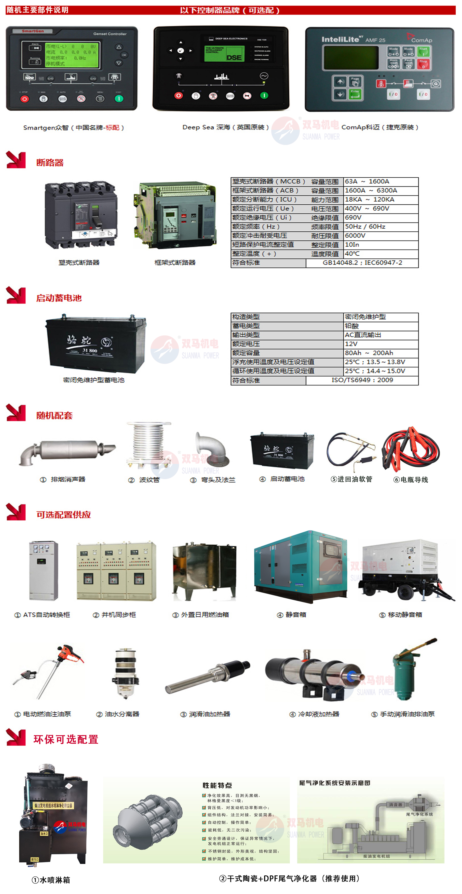 1.發電機標配江蘇雙馬無刷全銅發電機,可選配品牌:斯坦福,馬拉松,英格,利萊森瑪,美奧迪,西門子,ABB等;